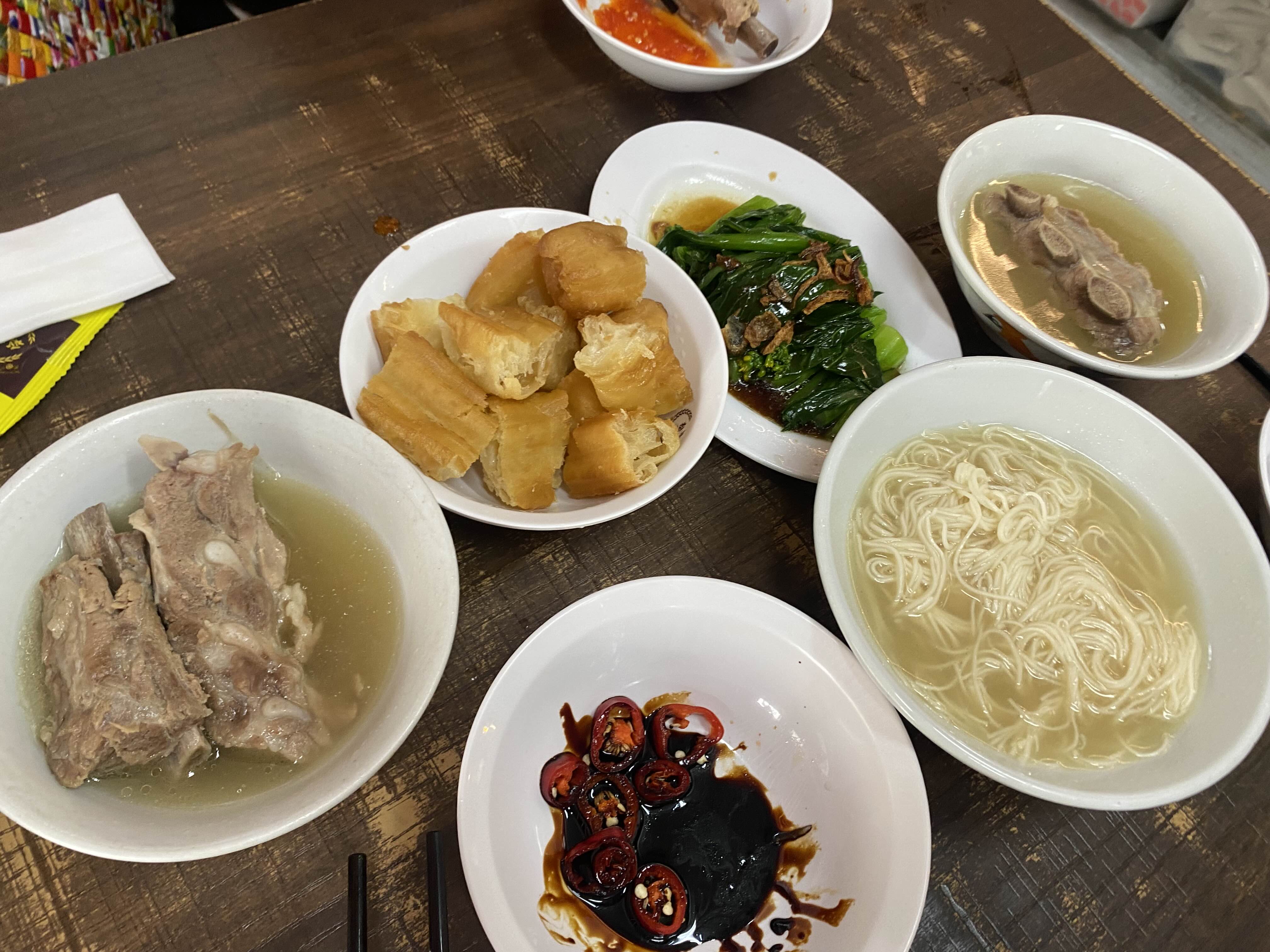 공심채, 쌀국수, 꽈베기 도넛 튀김을 시켰어요