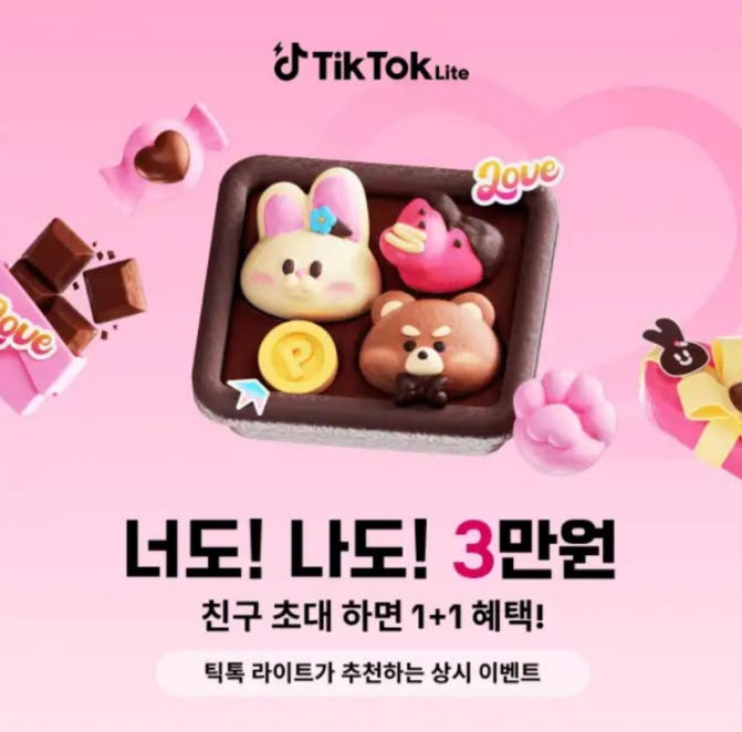 [언제든 참여할 수 있는 추천 이벤트] 틱톡 라이트에서는 상시적으로 진행하고 있는 "너도! 나도!" 이벤트가 있습니다. 해당 이벤트는 OOOO하면 1+1 혜택을 받는 것인데요. 이때 OOOO는 무엇일까요?