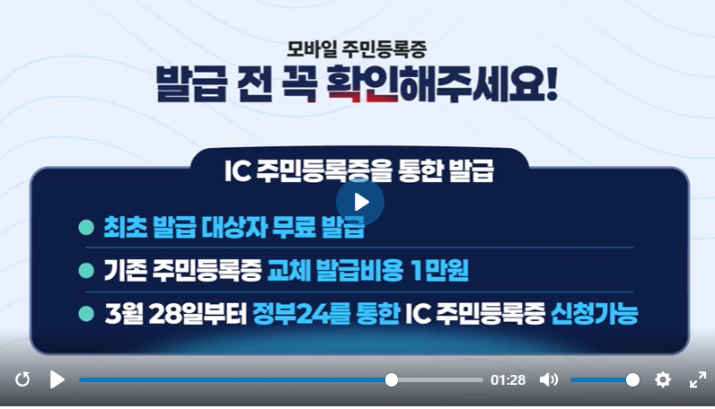 주민등록증을 소지한 모든 국민이 발급받을 수 있는 모바일 주민등록증으로 더욱 편리한 디지털 라이프를 경험해보세요. 지금 바로 가까운 주민센터를 방문하거나 3월 28일부터는 온라인으로도 간편하게 신청할 수 있습니다!