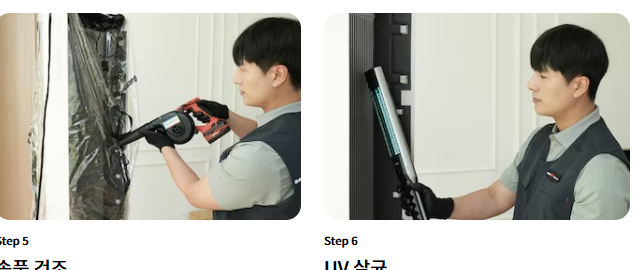 - 스팀살균 및 탈취: 스팀살균으로 세균과 곰팡이를 제거하며, 탈취 처리를 통해 불쾌한 냄새를 없앱니다.