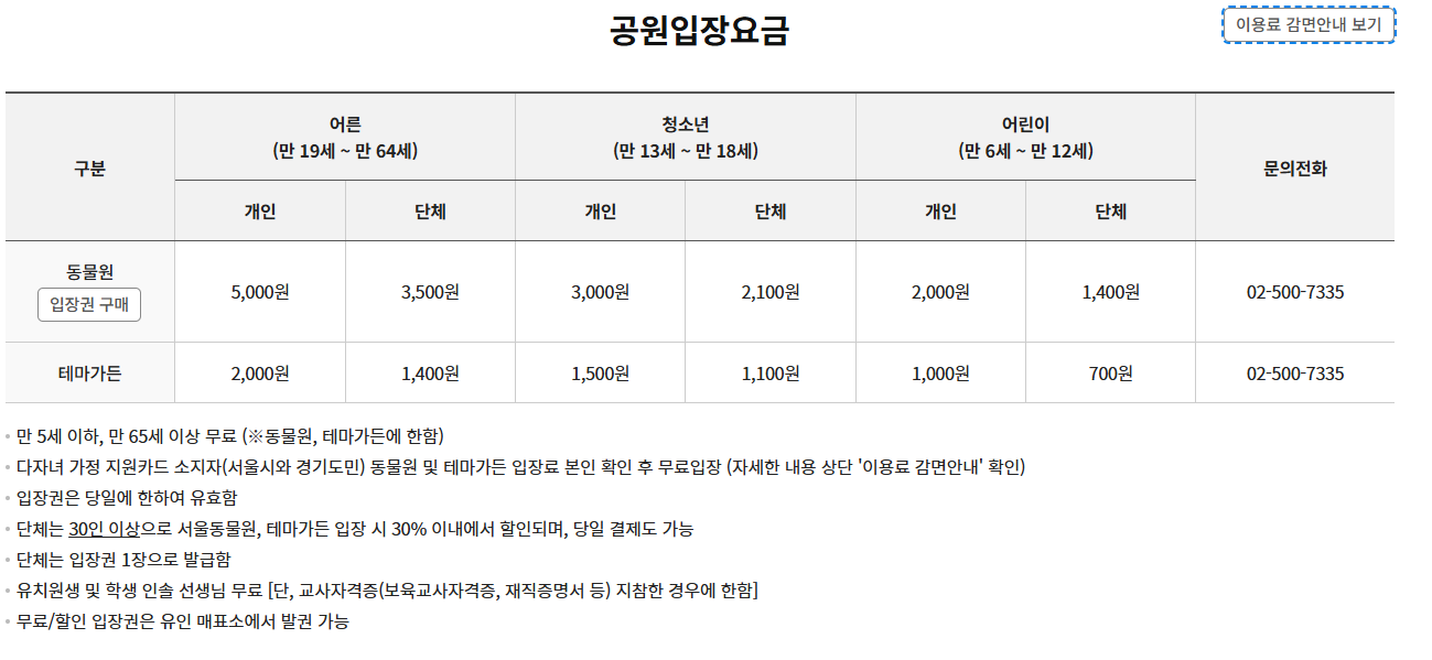 - 리프트, 코끼리 열차 등은 별도 요금이 부과됩니다.