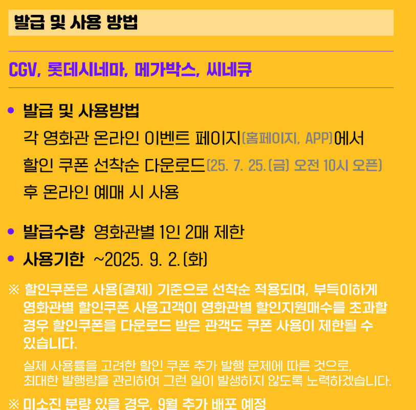 - 1인당 발급 매수: 각 영화관별 최대 2매