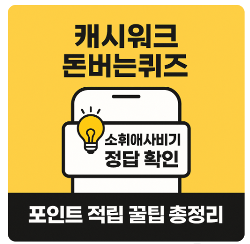 👉 지금 바로 캐시워크 앱을 켜고 ‘소휘애사비구미’ 퀴즈에 참여해 보세요!